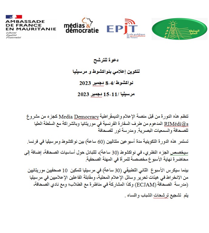 وأكد رئيس السلطة العليا للصحافة والسمعيات البصرية، الحسين ولد مدو، على أهمية الإعلام في التعريف بالبلد وتأمين ترقية المجالات الثقافية تزامنا مع اختيار نواكشوط عاصمة للثقافة في العالم الاسلامي