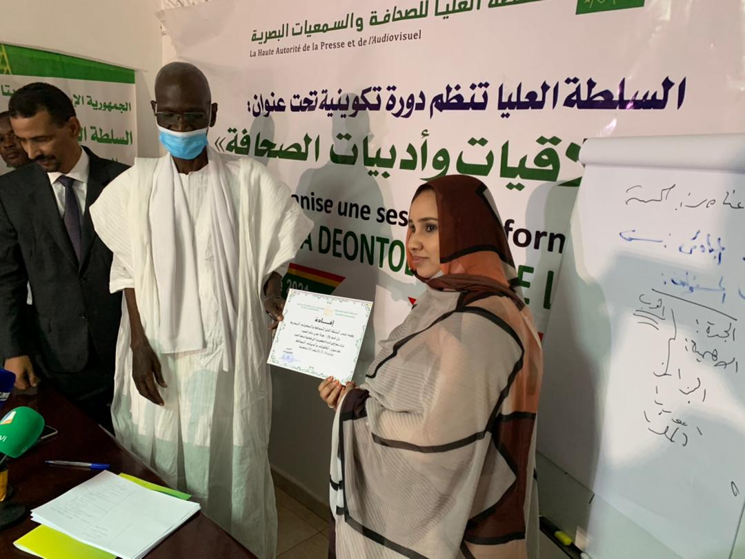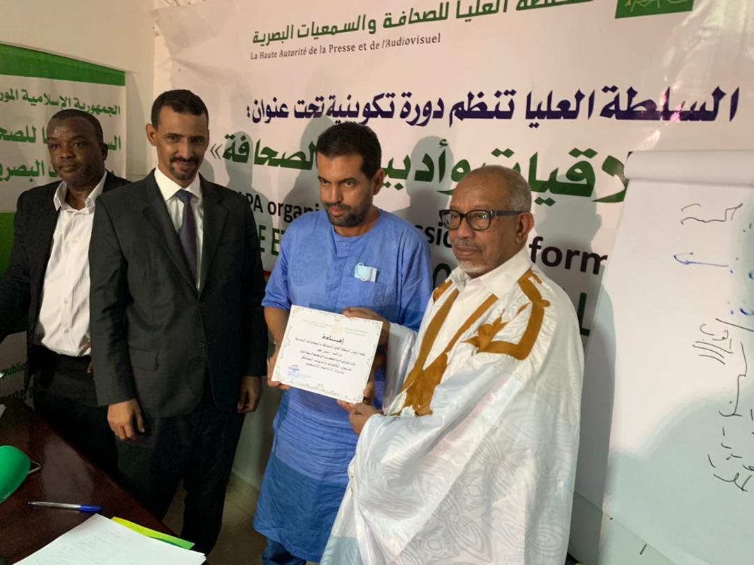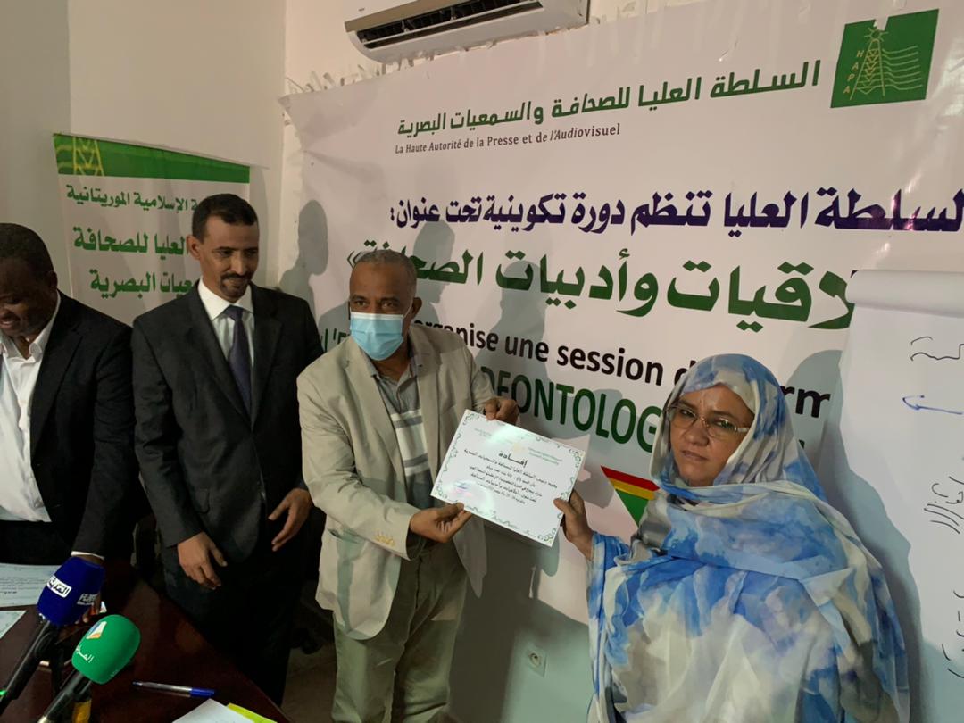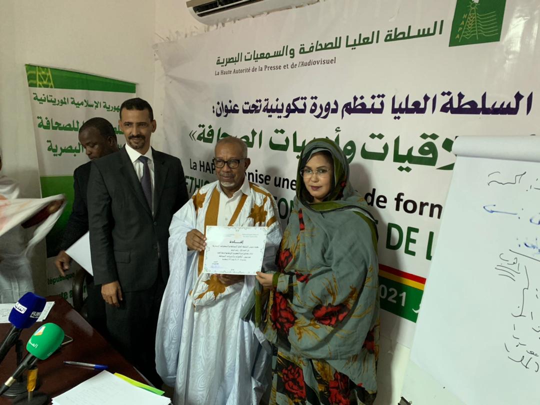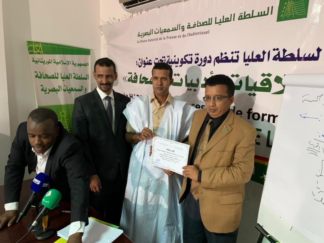ولدى إشرافه على اختتام الدورة تقدم رئيس السلطة العليا للصحافة والسمعيات السيد الحسين ولد مدو بالشكر للطاقم التدريبي على التمكن من نقل خبراتهم الواسعة للمشاركين وللمكونين على المواظبة المقدرة والتفاعل البناء التي تعكس تطلعهم للمزيد من تعزيز كفاءاتهم في المجال، وملتزما بتنظيم عدة دورات متقدمة في مجال اخلاقيات الصحافة لتمكين الصحفيين من مواكبة المستجدات وتحيين المعارف المعنية خدمة لخلق اعلام مهني نوعي ومتنوع.