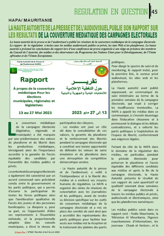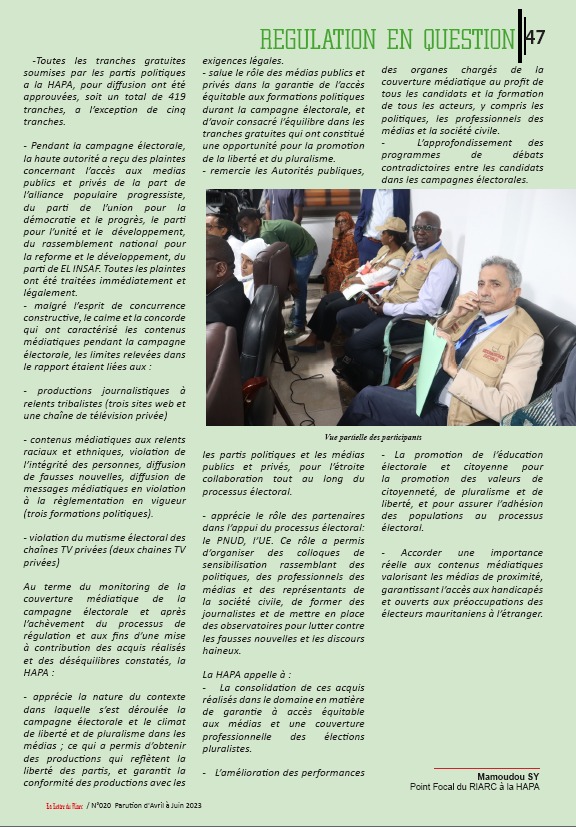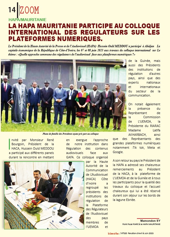 صدرت شبكة الهيئات التنظيمية للاتصالات السمعية البصرية الإفريقية RIARC مجلتها الدورية حول نشاطات هيئات الضبط الاعلامي الافريقية