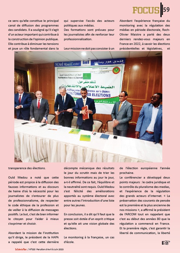 - ندوة الانتخابات والاتصال السمعي البصري بمشاركة رئيس هيئة الاتصال السمعي البصري الرقمي بفرنسا السيد روك اوليفييه ميستر
